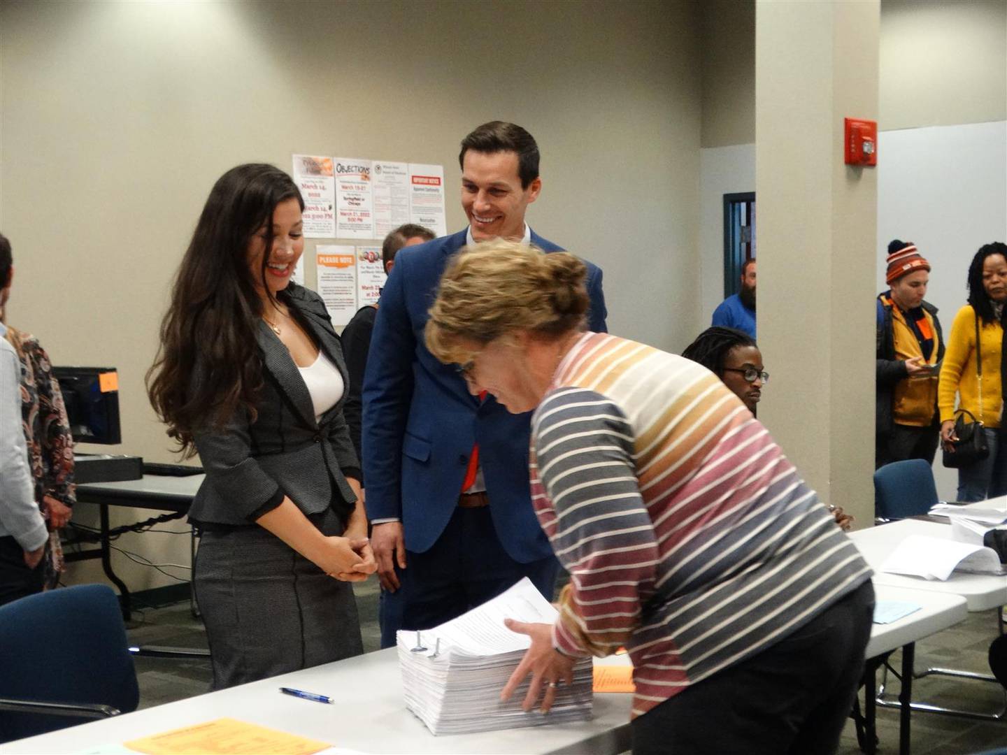 Republican candidates Jesse Sullivan and Kathleen Murphy submit petitions to the State Board of Elections in Springfield on Monday to run for governor and lieutenant governor in the June 28 primary. (Capitol News Illinois photo by Peter Hancock)