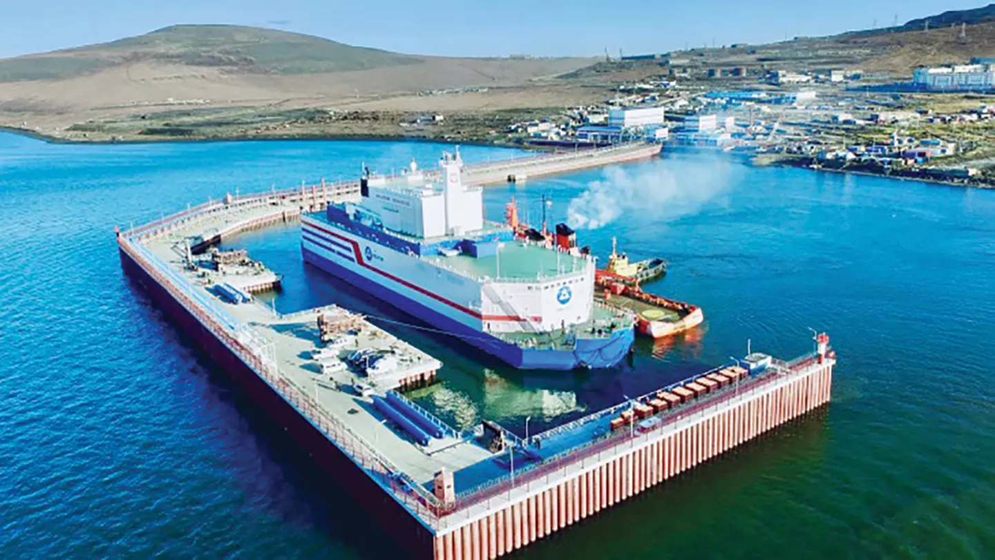 A barge next to the Russian city of Vilyuchinsk holds two Small Modular Nuclear Reactors which provide electricity for the town. It is one of two SMNR powerplants in the world.